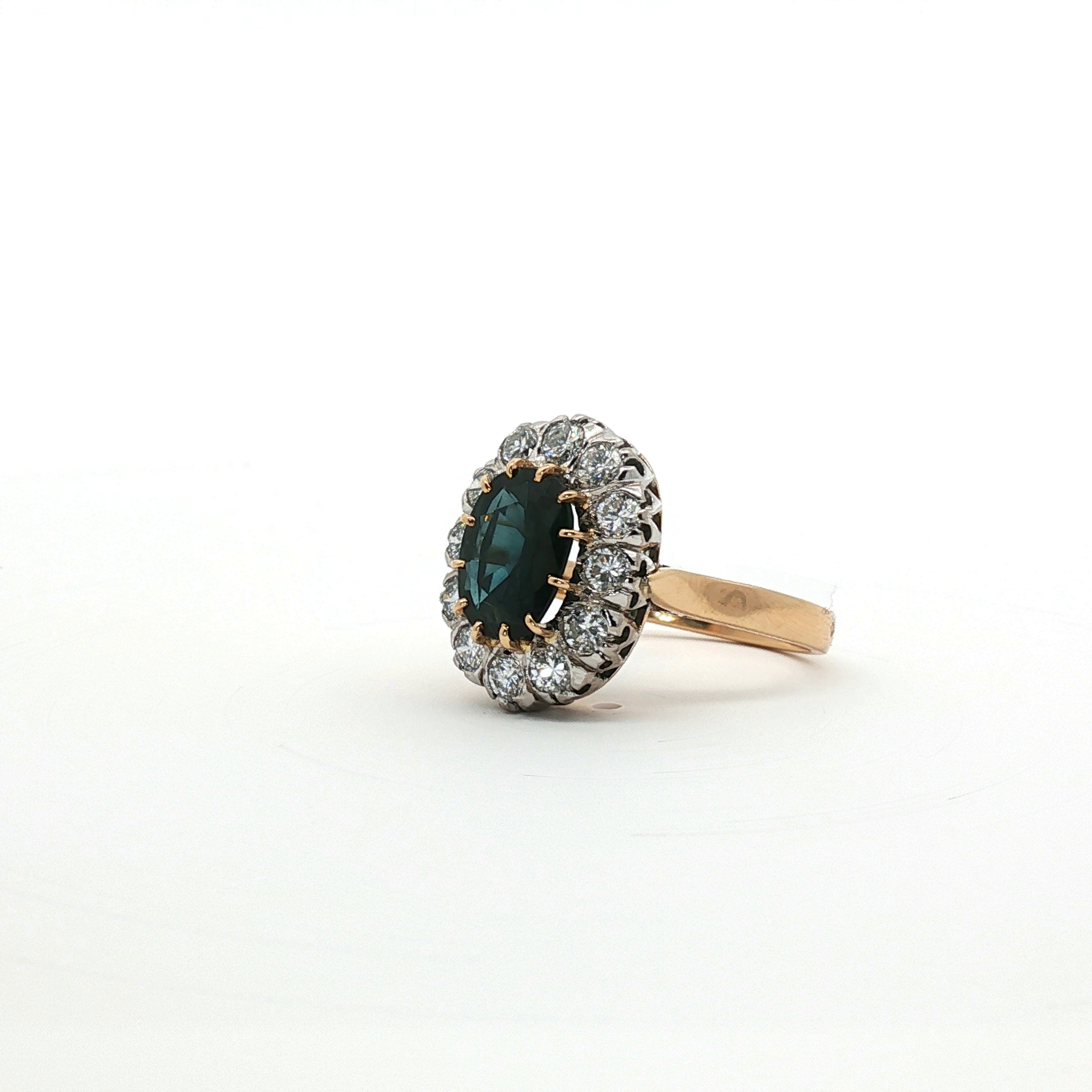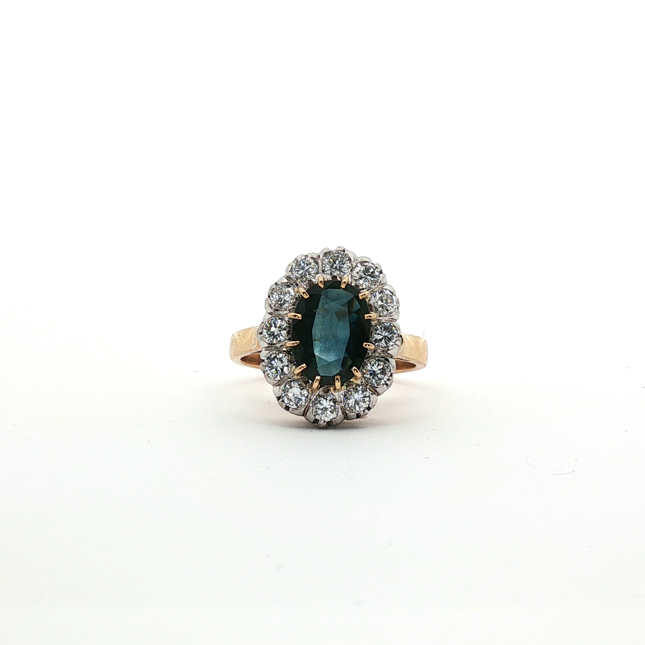 - Poids total en carats : Saphir estimé à 2.10 ct, 12 diamants poids total estimé à 0.54 ct