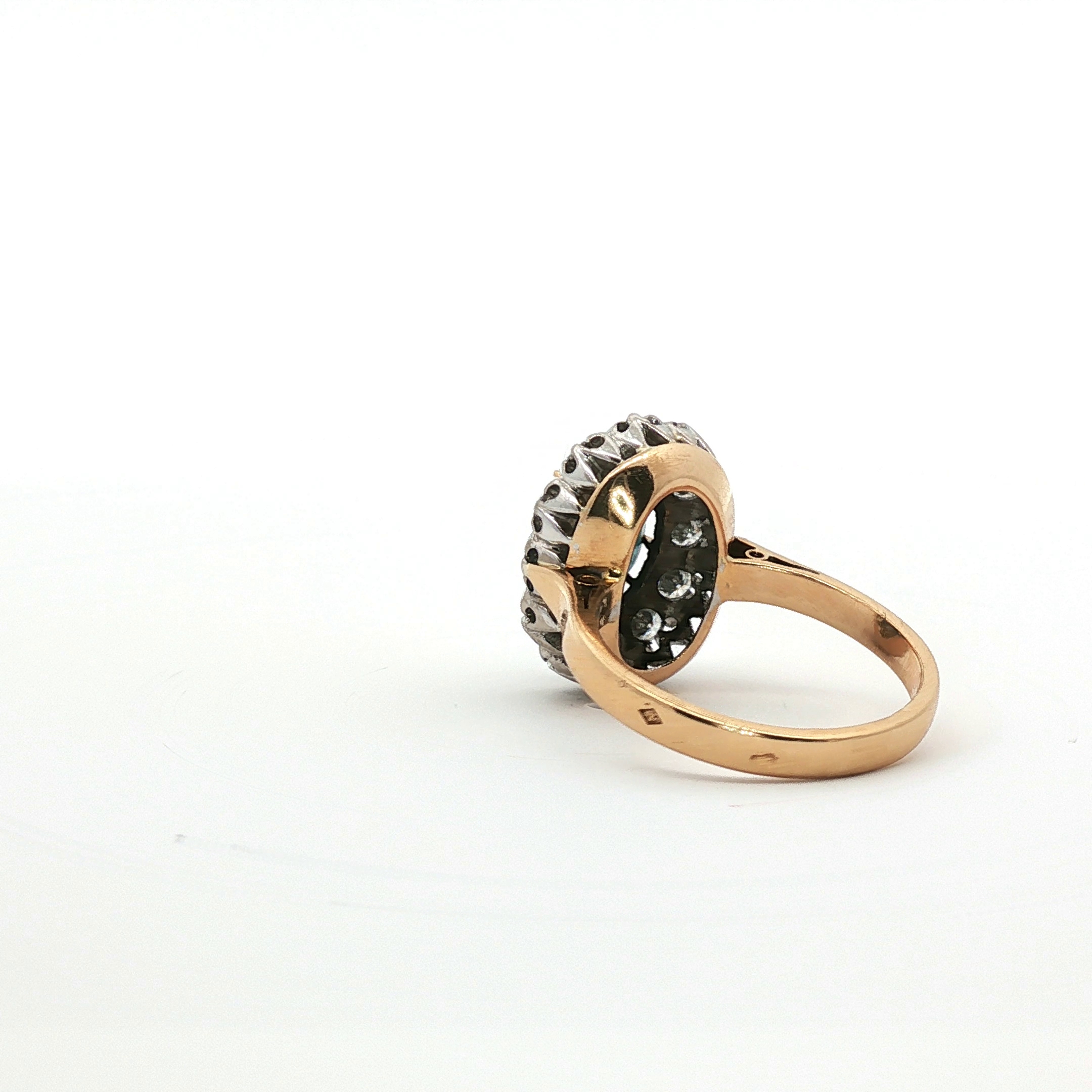 Nom : Bague marguerite saphir et diamants sur or bicolore