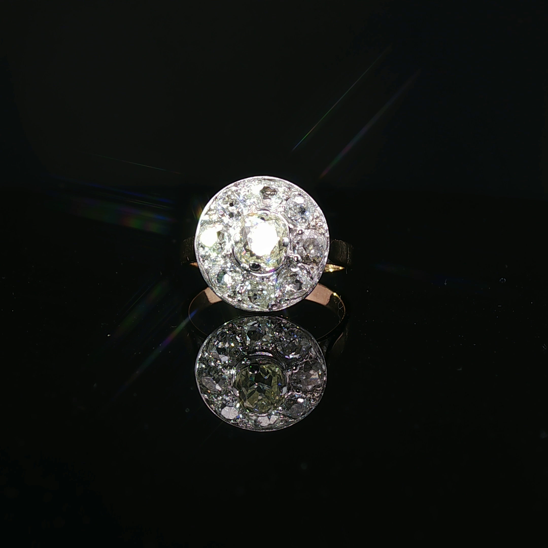 diamant taille ancienne serti par quatre griffes, et entouré par 8 diamants