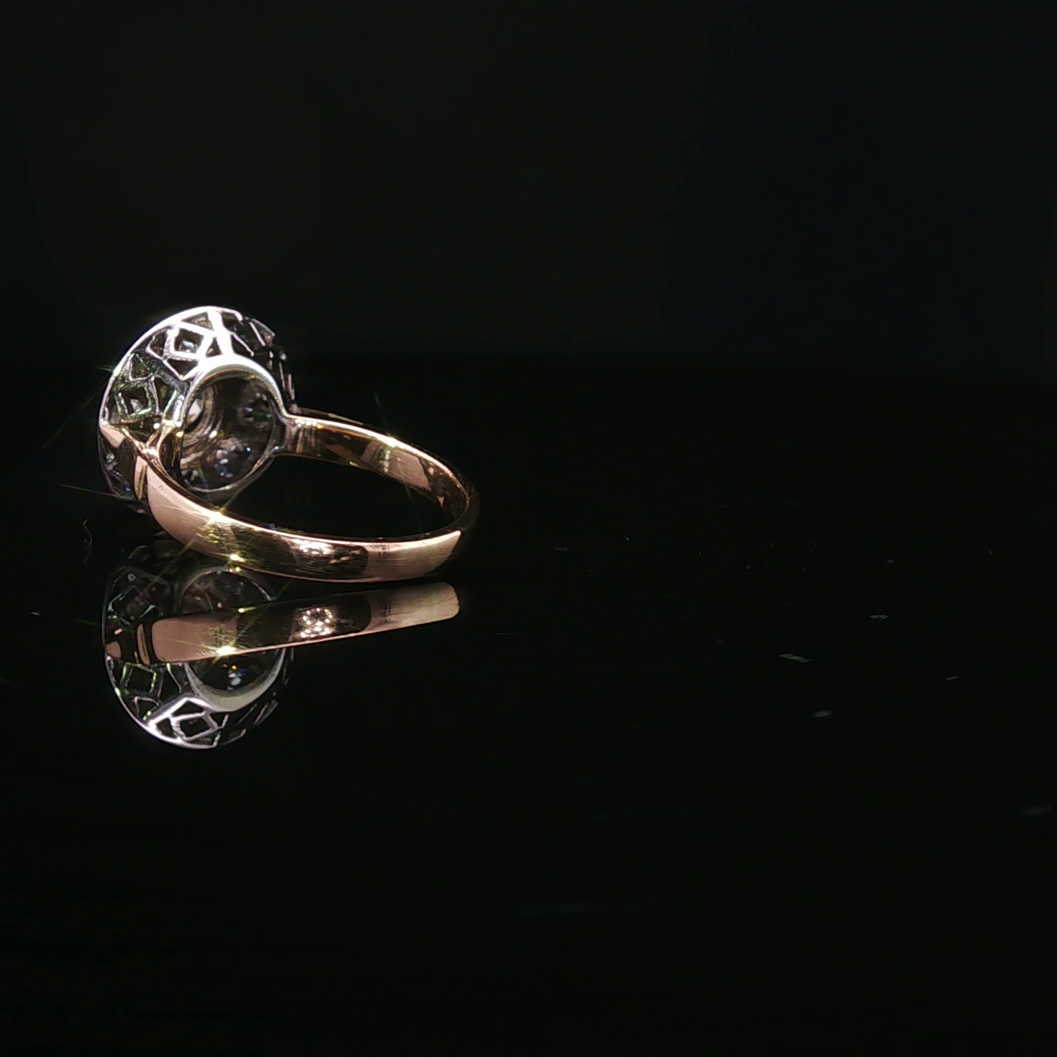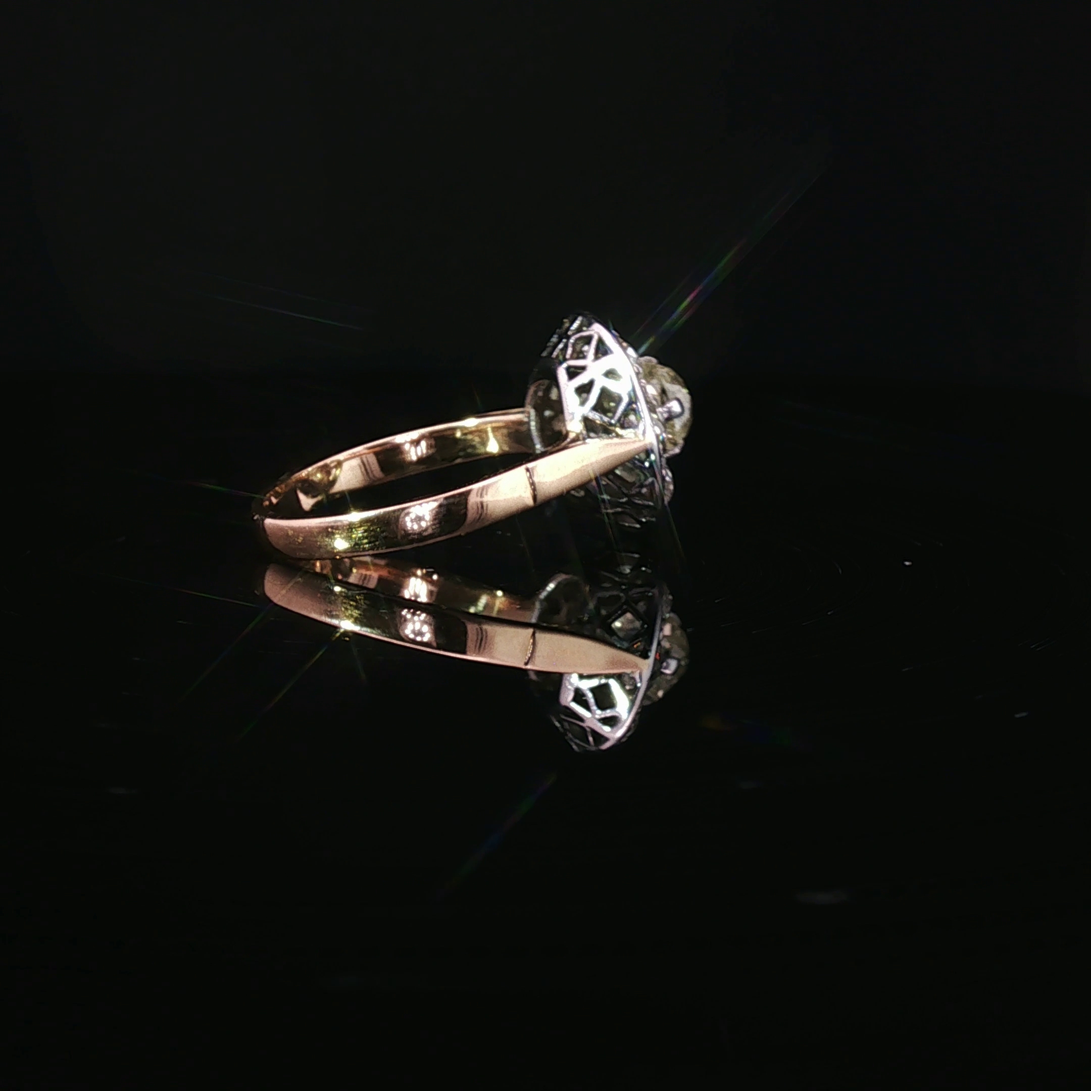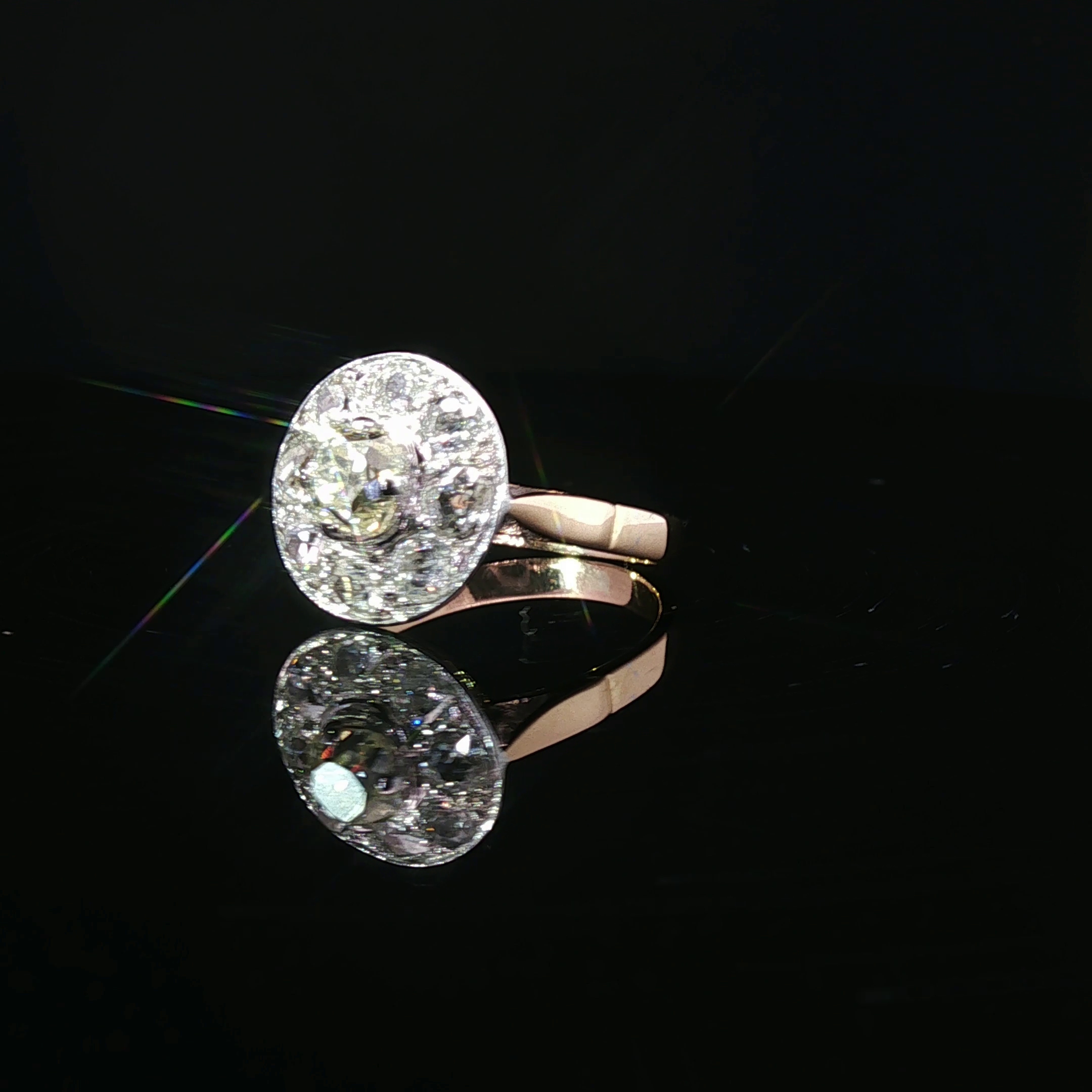 Bague ronde ancienne en or rose et blanc 750‰, centré d’1