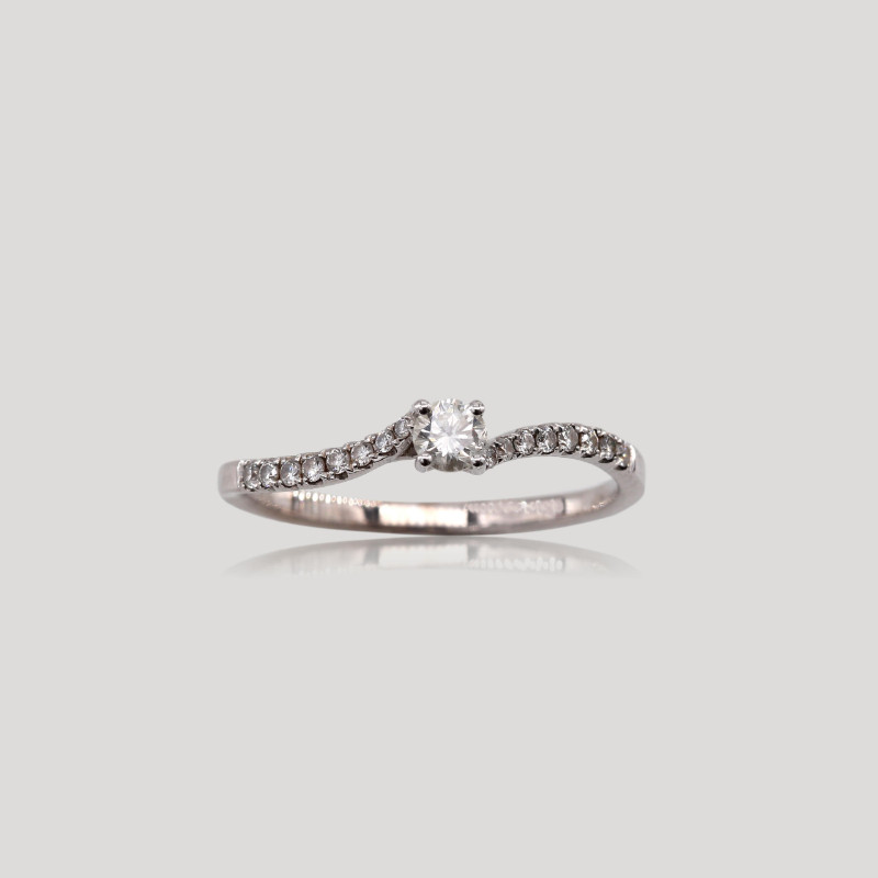 Nom : BAGUE SOLITAIRE ACCOMPAGNÉ OR BLANC
