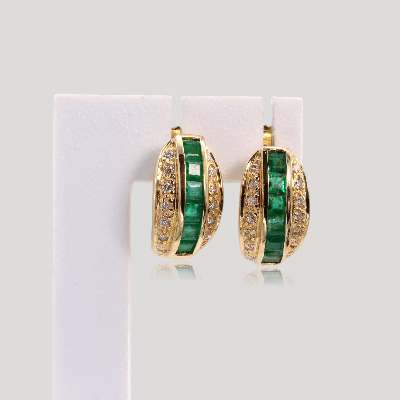 BOUCLES D'OREILLES ÉMERAUDES CALIBRÉES ET DIAMANTS