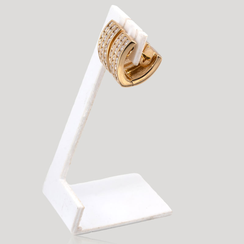 Ces élégantes créoles revisitées et entièrement serties rail de 42 diamants sur trois rangs présentent un design moderne chic à porter au quotidien comme lors des grands soirs.