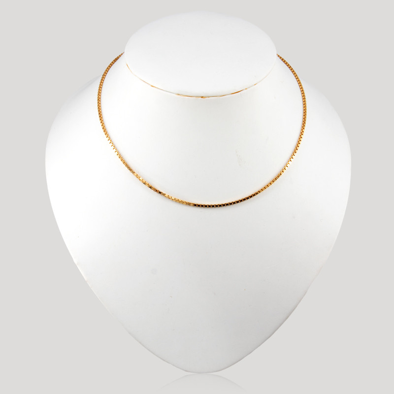 La maille vénitienne de cette chaîne présente une succession de petites boîtes imbriquées les unes aux autres pour un effet géométrique du meilleur effet.