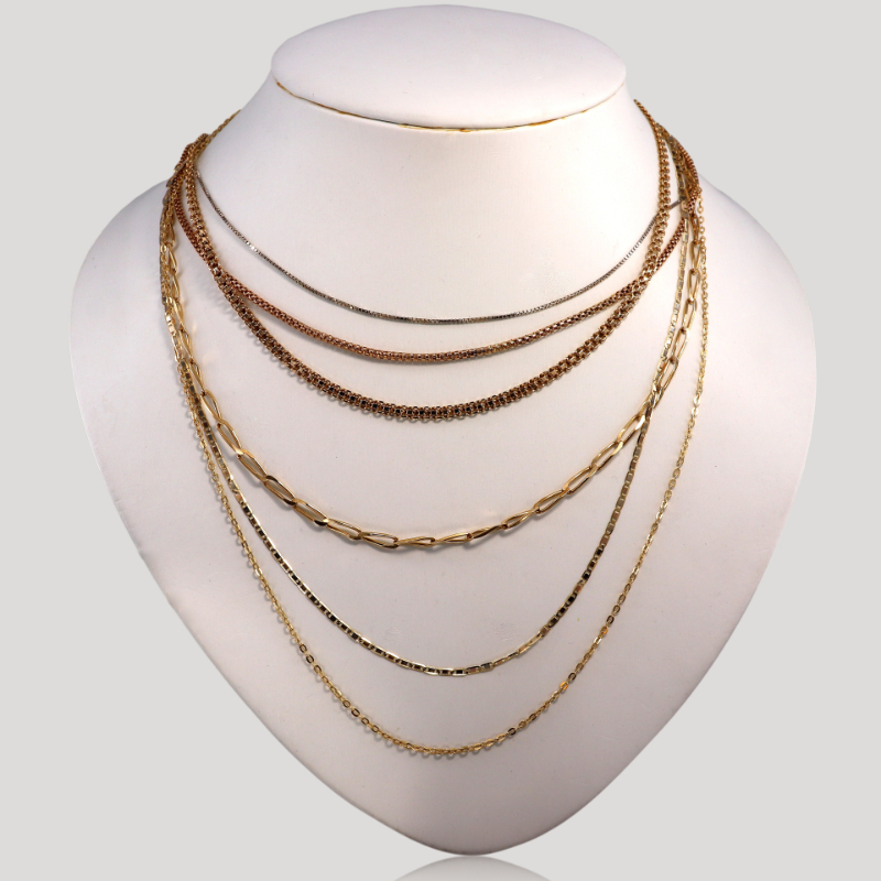 Une sélection de chaînes vous attend en boutique. Maille gourmette, figaro, marine, forçat, corde, jaseron, grain de café, courte ou longue, en or ou argent, anciennes ou actuelles, nous avons de nombreux modèles à vous proposer tout au long de l'année. N'hésitez pas à nous contacter.