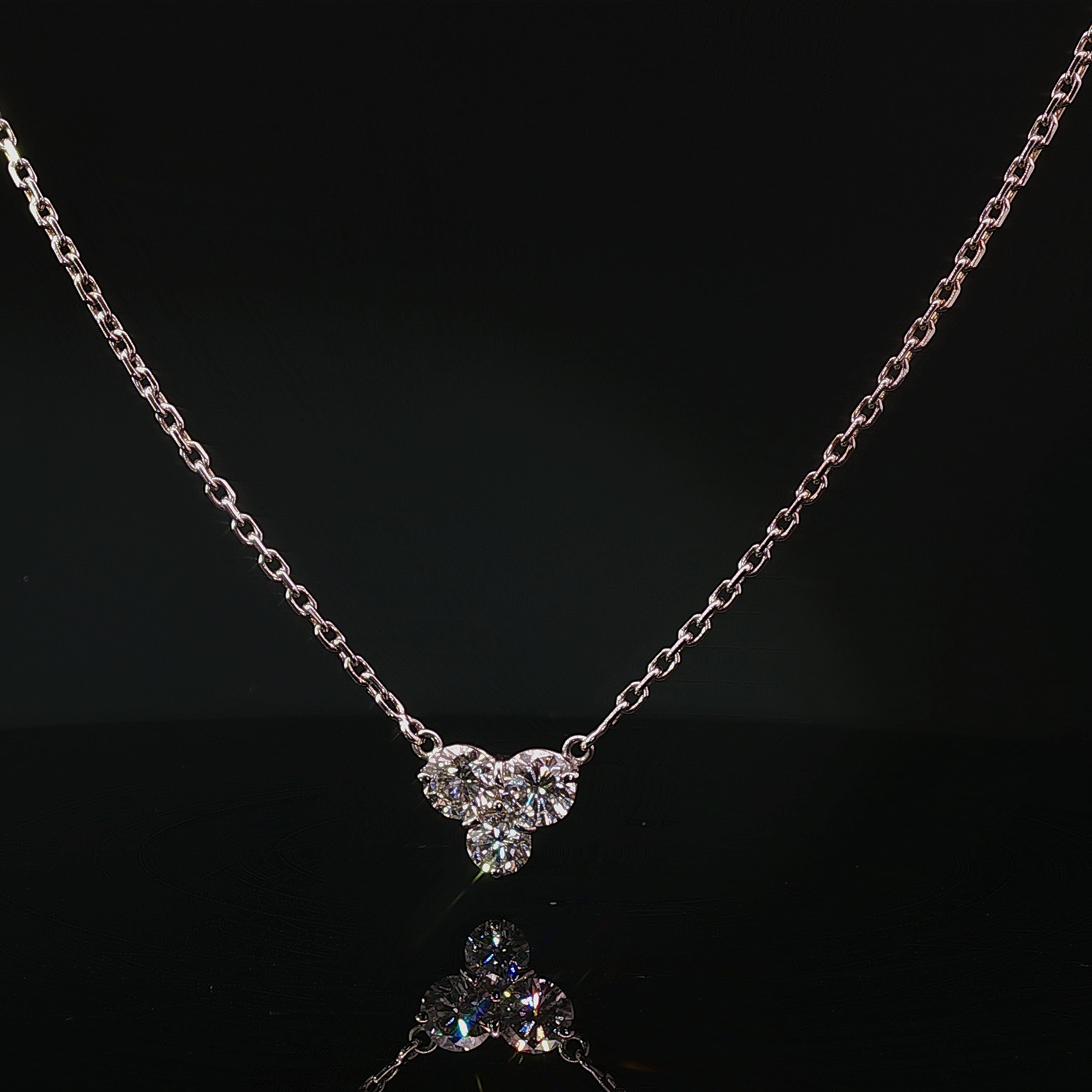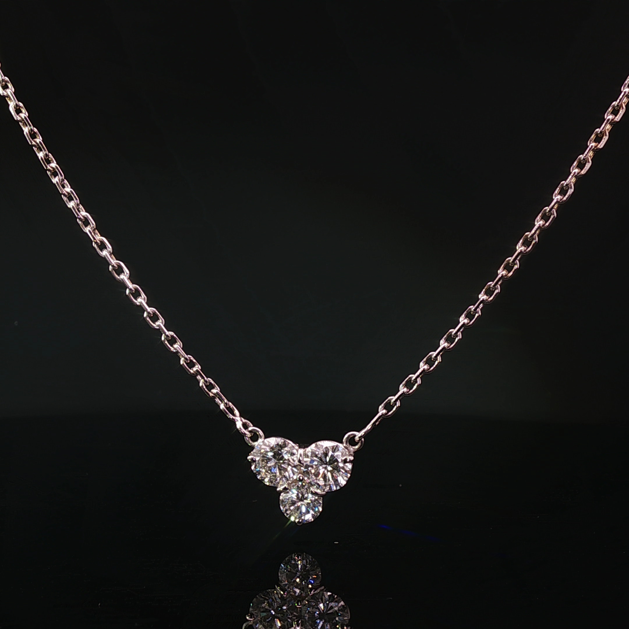 Collier en or blanc 750‰ comprenant une chaîne maille forçat diamantée de 44,5cm de longueur avec fermoir anneau ressort, et un pendentif orné de 3 diamants taille brillant moderne montés sur chatons à trois griffes.