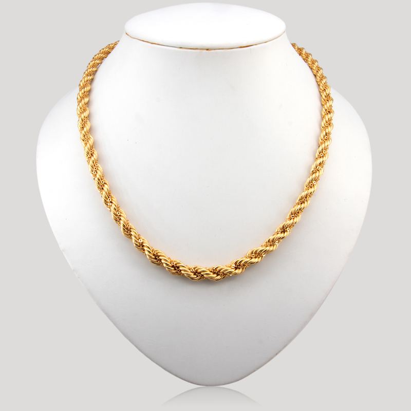 Très beau collier en chute associant une maille corde en or jaune lisse et texturé dans laquelle une fine chaînette maille forçat miroir s'enroule pour plus de lumière et de fantaisie. Fermoir mousqueton.