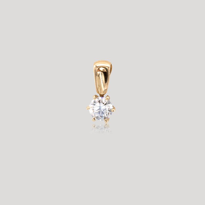 Pendentif en or jaune composé d'un diamant rond brillant moderne d'environ 0,40 carats serti à 6 griffes pendu au bout d'une bélière bombée en or jaune. Le pendentif solitaire diamant constitue l'une des pièces phares d'un coffret à bijoux. Choisissez-le éthique en optant pour un bijou de seconde main !